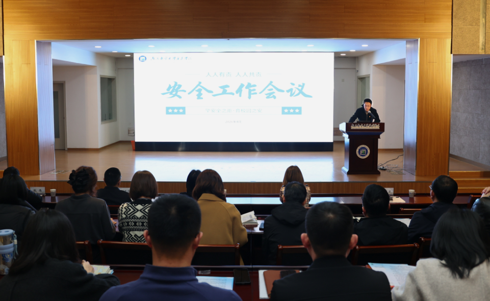 院长沈建华做学院安全工作报告,他从工作格局持续优化、安防硬件提质增效、管理规范全面提升、精准防控守牢底线、宣教融合入脑入心等5个方面总结2025年学院安全工作取得的成效,并从压实安全责任、深化科技赋能、聚焦重点领域、厚植安全文化、强化队伍建设、健全应急体系等六个方面部署学院2026年安全工作的主要任务。